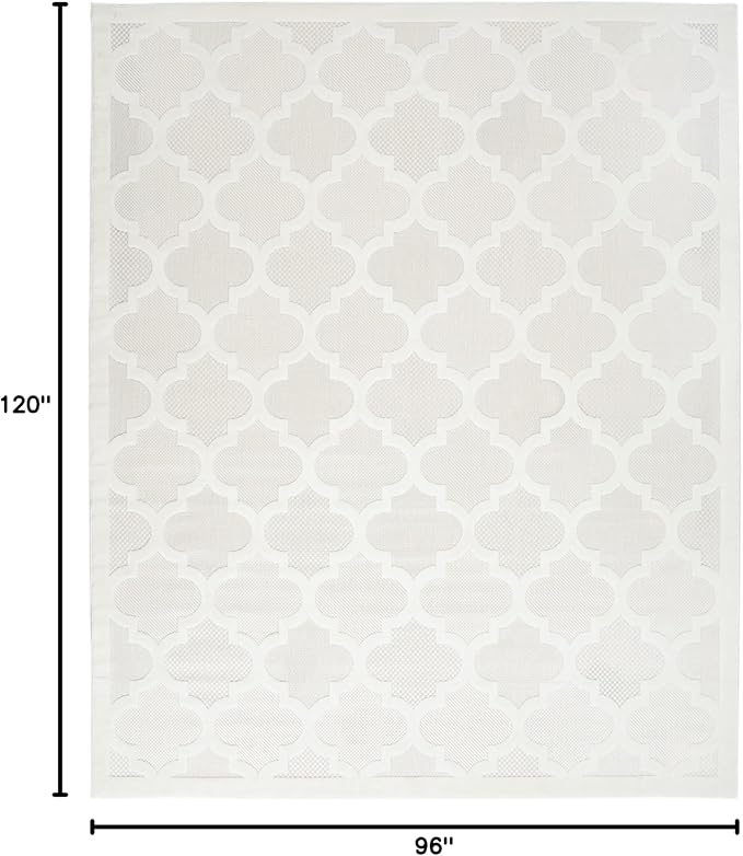 Nourison Home Easy Care Moroccan Area Rug 8' x 10', Ivory/White, Rectangular, 0.25" Thick, Trellis Easy Cleaning Non Shedding Bed Room Living Room Dining Room Backyard Deck Patio