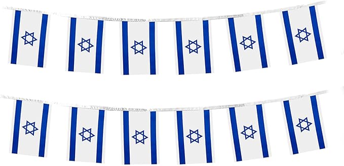 - Easy to Hang and Reusable: These Israeli flags are quick and easy setup for hanging along fences, walls, or across rooms. Each flag is pre-attached to a sturdy string. Simply fold and store the flag banners for next use.