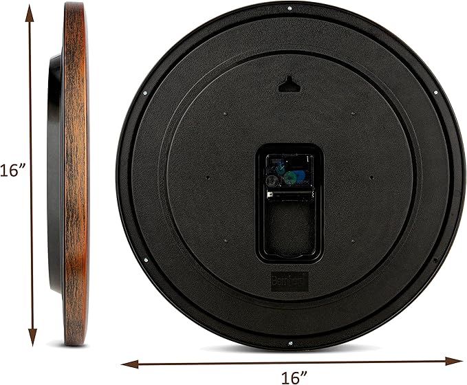Bernhard Products Large Wall Clock 16 Inch Silent Non Ticking Movement Quartz Battery Operated Round Easy to Read Decorative Classic Brown Home/Kitchen/Office/Classroom/School Clocks, Black Numbers