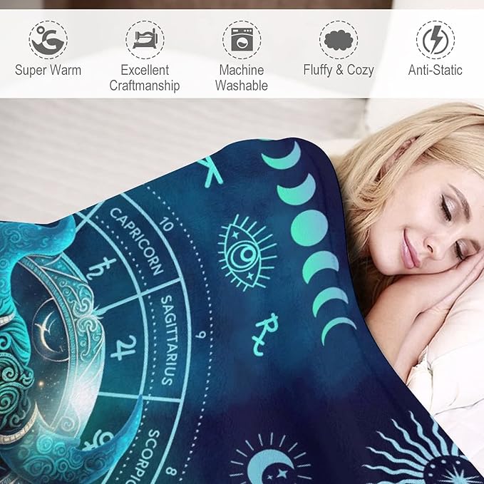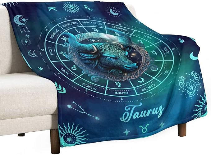 Taurus Blanket Gifts, 80" x 60" Rectangular Flannel Zodiac Throw Blanket Cozy, Gift for Boys Girls Teen Women Men Tarot Cards Lovers Birthday Anniversary Festival