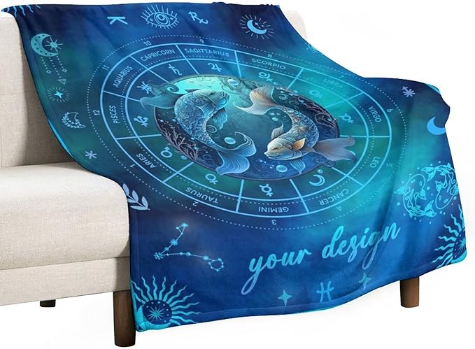 Custom Pisces Blanket Gifts, 50" x 40" Rectangular Flannel Zodiac Throw Blanket Cozy, Personalized Gift for Boys Girls Teen Women Men Tarot Cards Lovers Birthday Anniversary Festival