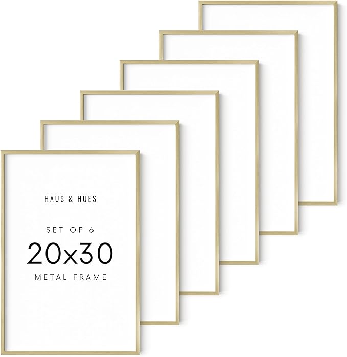 HAUS AND HUES 20x30 Gold Metal Picture Frames - Premium Aluminum with Hanging Hardware, Shatterproof Plexiglass - Perfect for Home or Office (20x30 in, Gold, Set of 6)