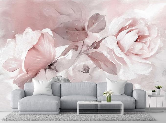 Rose Leaves Oil Painting Wallpaper, Large Wall Background Mural for Bedroom and Living Room(Non-self-Adhesive)