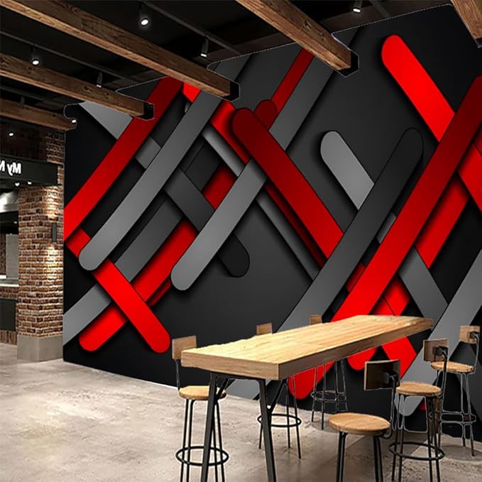 GeRRiT Red and Black Stripes Wall Murals, Geometric Background murals,for Bedroom Decor Living Room tv Background Office Playroom Wall Decors Waterproof Mural-Peel and Stick,157.5""W x110.3""H