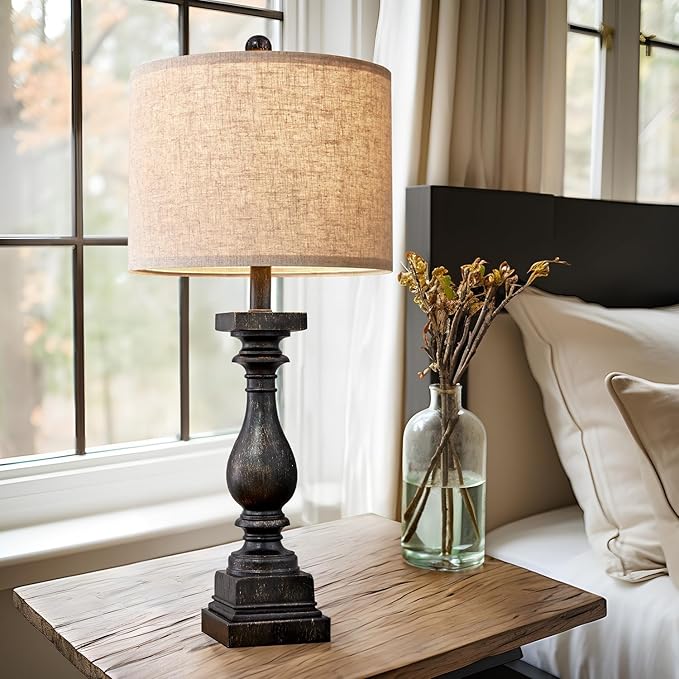 BOBOMOMO Retro 27" USB Charging Ports A/C Farmhouse Single Lamps for Bedrooms Retro Side Table Lamps Bedside Lamp for Side Nightstand Living Room 1 Pack