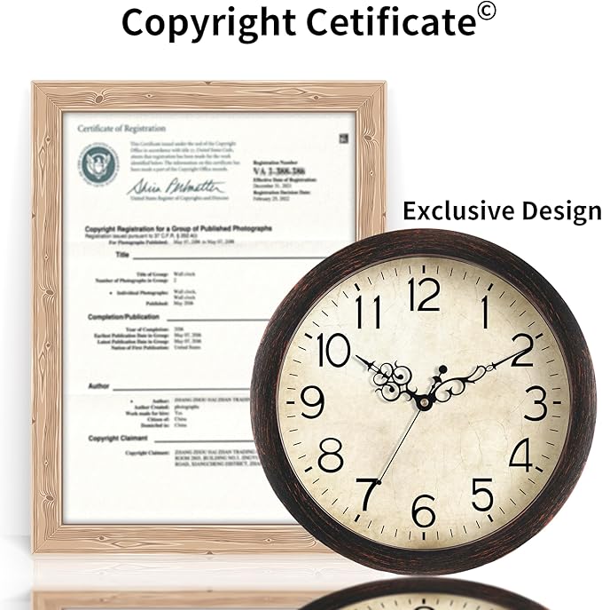 Wall Clock 12 Inch Vintage Wall Clocks Battery Operated Quartz Silent Non-Ticking Retro Rustic Style Clock Decorative for Living Room, Home Office, Kitchen,Bedroom (Bronze)