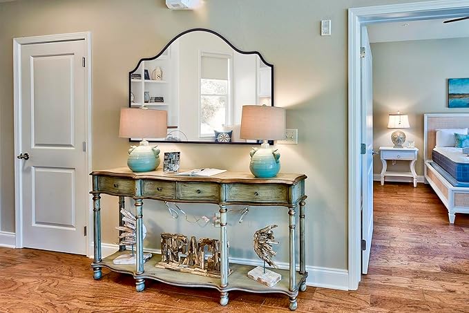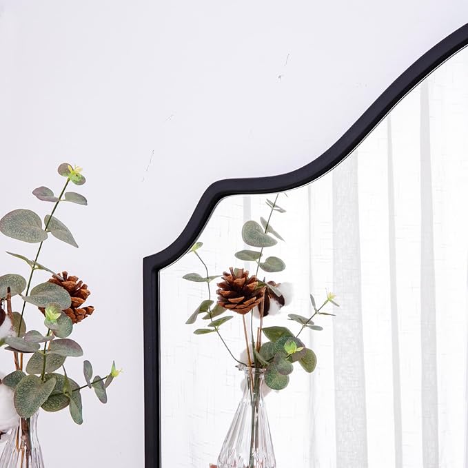 - 【Arched Design】Unique wall mirror decor with wooden frame creates antique and low profile atmosphere. Black arched frame increases stereoscopic and sense of reality. When light shines on smooth surface adds natural shadow, give a better sense of brightness and space.