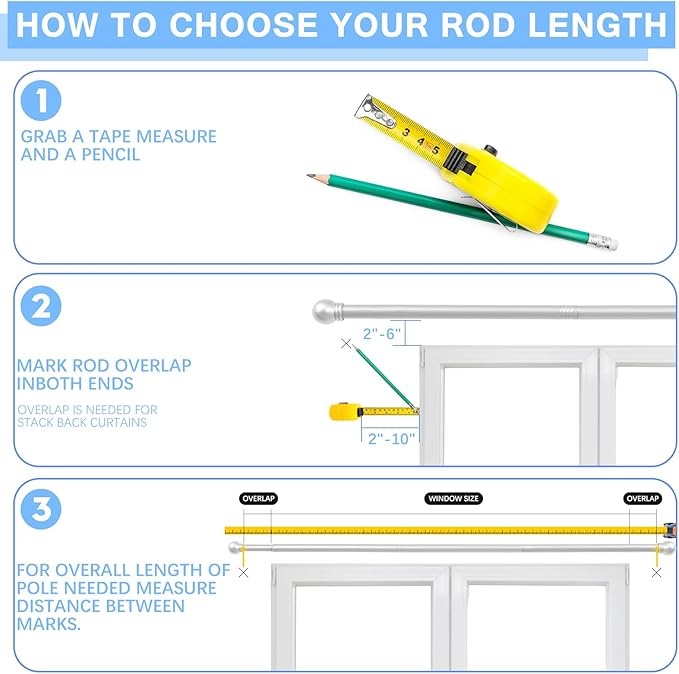- 【Adjustable Length】Pack of 1, Rod 6/8 inches diameter, curtain rod adjusts from 16 to 48 inches or 60 inches max, 0.6 mm thickness, Comes with 3 rods that need to be screwed together, not 2 poles