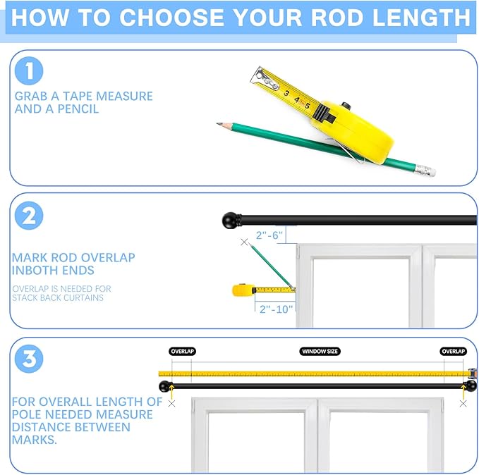 - 【Strong and Durable】Each 1-inch diameter sectional rods overlaps and screws into the next, which reinforces the unit and allows for custom length, strong metal curtain rod can hold up to 30 LB
