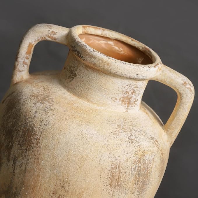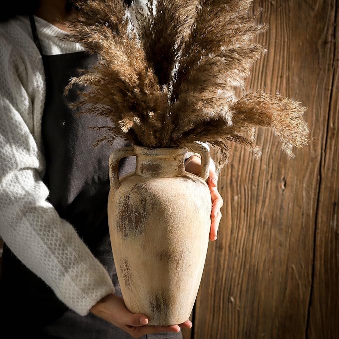 Large Ceramic Flower Vase,11.41 inch Tall Terracotta Farmhouse Rustic Vase with 2 Handles for Home Decor, Living Room Shelf Decor, Enterway, Wedding, Table Decoration
