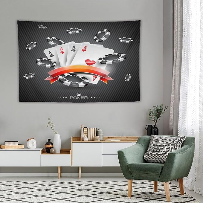 ZhiRain 3D Playing Cards Tapestry Wall Hanging Poker Casino Chips Gambling Tapestries Home Decor for Living Room Bedroom Farmhouse Apartment Dorm 60"x90"