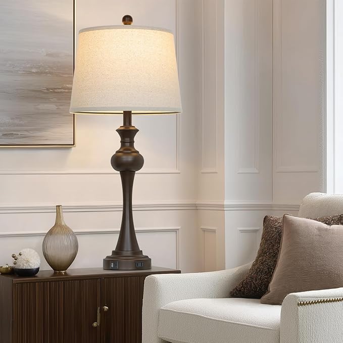 - Convenient USB+Type-C Charging Ports & AC Outlet - The brown lamps set of 2 built in 5V/2.1A dual USB charging ports and AC power outlet. This means you can conveniently charge 3 devices at the same time such as cell phones, Kindles, pads and other electronic devices. The charging function is available even when the light is off, so you can easily charge your phone at night with the bedside lamps.
