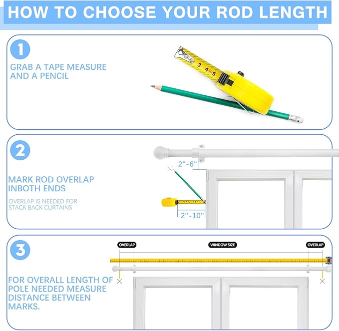 - 【Adjustable Length】Pack of 2, rod 1 inch diameter, curtain rod adjusts from 16 to 48 inches or 60 inches max, 0.6 mm thickness, Comes with 3 rods that need to be screwed together, not 2 poles
