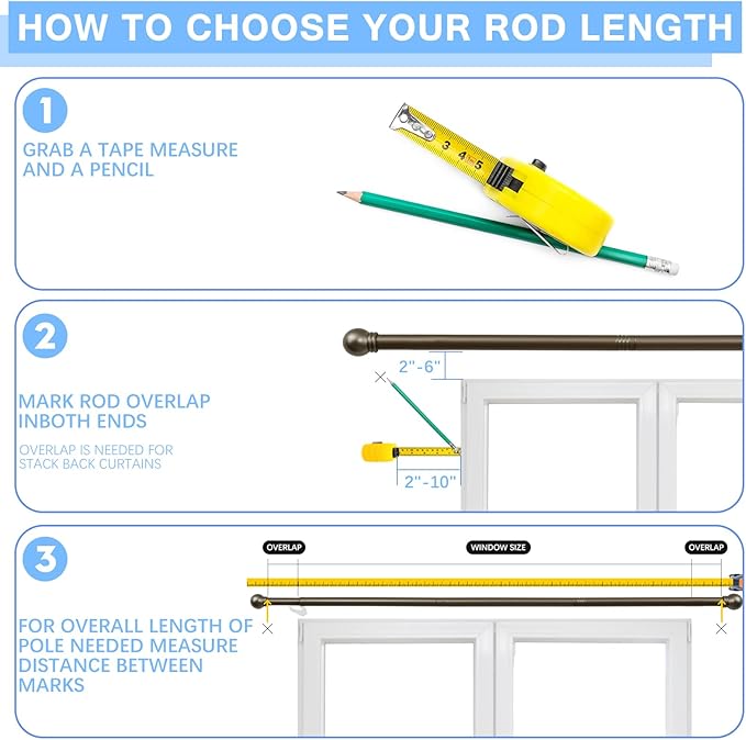 - 【Adjustable Length】Pack of 2, rod 6/8 inch diameter, curtain rod adjusts from 16 to 76 inches or 88 inches max, 0.6 mm thickness, Comes with 5 rods that need to be screwed together, not 2 poles