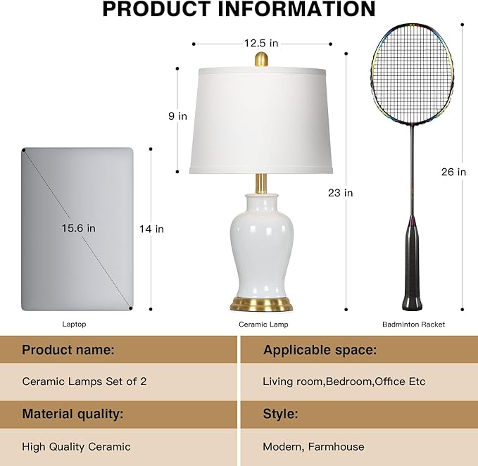 - 【Superior Quality 】The white ceramic table lamp is made of high-quality ceramic with smooth and shiny surface, durable, scratch-resistant and will not fade. The gold metal base adds a touch of luxury. Elegant lamps for nightstand can enhance the overall beauty of your home decor. The modern design adds character and warmth to your house, creating a cozy ambiance