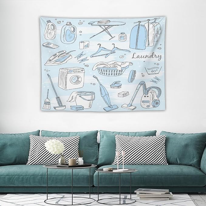 ZhiRain Laundry Room Tapestry Wall Hanging Blue Laundry Theme Tapestries Home Decor for Living Room Bedroom Farmhouse Apartment Dorm 30"x40"