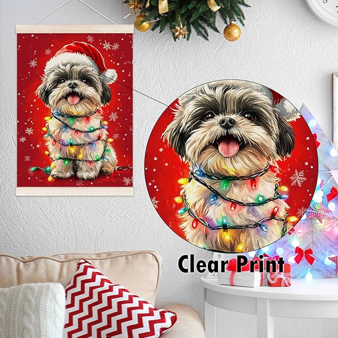 Funny Christmas Shih Tzu Poster Hanger with Wood Frame, Christmas Dog Wall Art Decor for Home, Shih Tzu Gift for Women, Xmas Shihtzu Posters for Bedroom Living Room Decor, 12x16 Inch