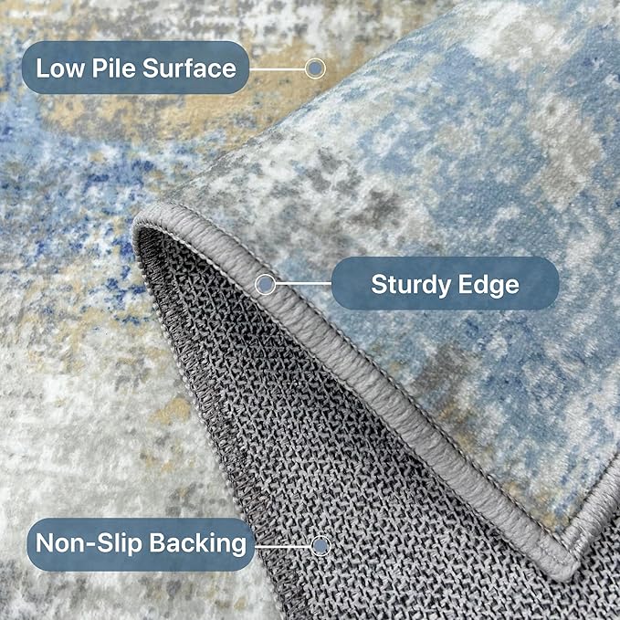 - Tender Touch: Experience the ultimate in luxury with our low-pile polyester modern 1'5''x2'5'' rug, providing a cozy cushioned surface that eliminates the need for extra padding. This soft blue and cream abstract rug insulates your floors, creating a warm and inviting atmosphere in your living room, bedroom, dining room
